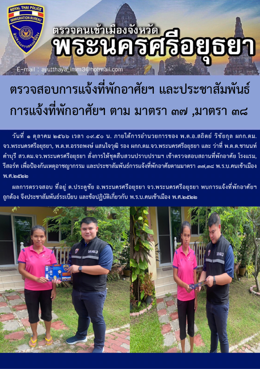 ตรวจคนเข้าเมืองจังหวัดพระนครศรีอยุธยา