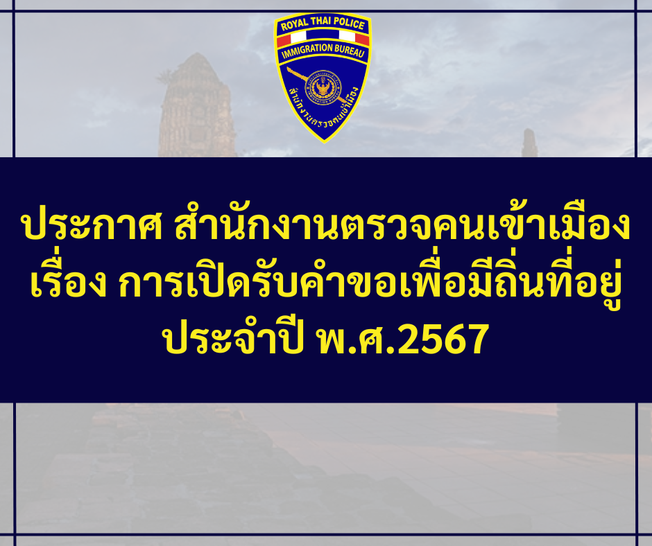 ประกาศ สำนักงานตรวจคนเข้าเมือง เรื่อง การเปิดรับคำขอเพื่อมีถิ่นที่อยู่ ประจำปี พ.ศ.2567 Admin 21 มีนาคม 2568